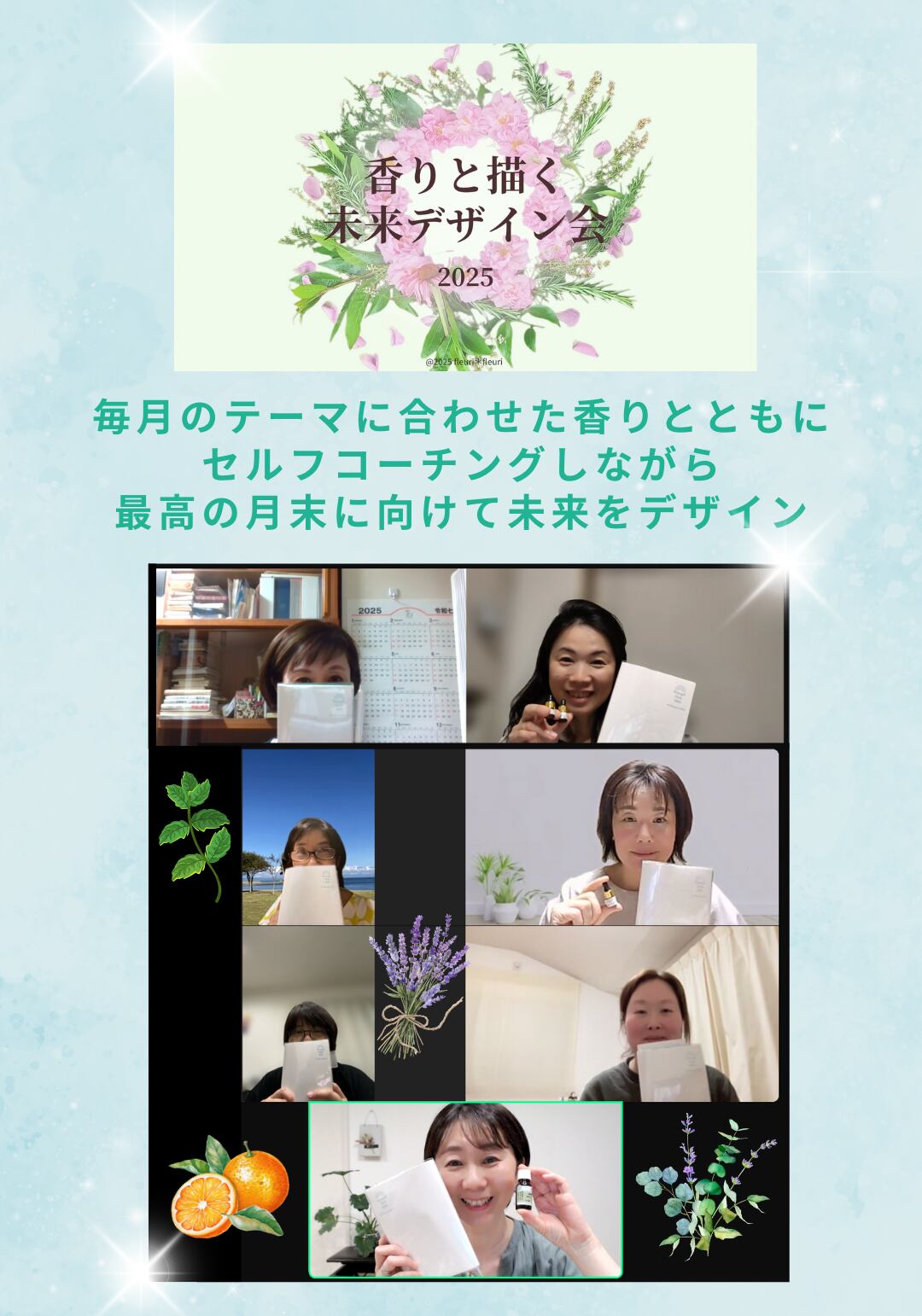 香りと仲間の力、個別コーチングの相乗効果で、あなたの未来デザインをより明確にし、深め、広げていきます。「香りを楽しみ、自分らしい未来をしっかり描きたい方」におすすめです。