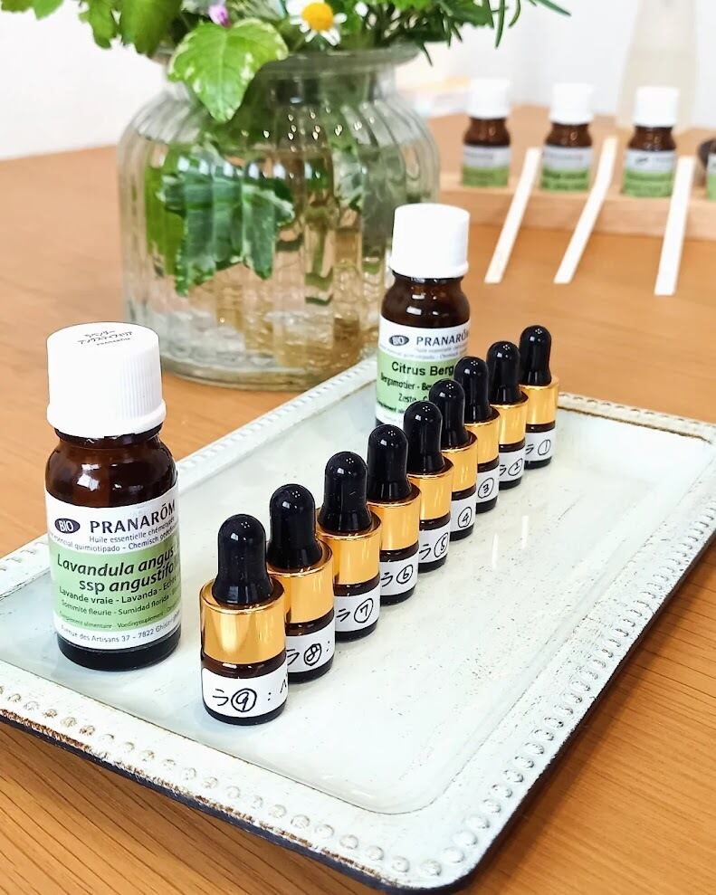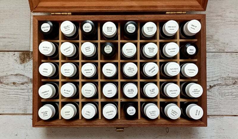 イランイラン/オレガノ/オレンジ・スイート/カモマイル・ジャーマン/カモマイル・ローマン/クラリセージ/クローブ/サイプレス/サンダルウッド/ジャスミン/ジュニパー/ゼラニウム・エジプト/ティートゥリー/ネロリ/バジル/パチュリー/パルマローザ/プチグレン/ブラックスプルース/フランキンセンス/ペパーミント/ヘリクリサム/ベルガモット/ホーウッド/マジョラム/ミルラ/ユーカリ・ラディアタ/ユーカリ・レモン/ラヴィンツァラ/ラベンダー・アングスティフォリア/ラベンダー・スピカ/リトセア/レモン/レモングラス/ローズ/ローズマリー・カンファー/ローズマリー・シネオール/ローレル